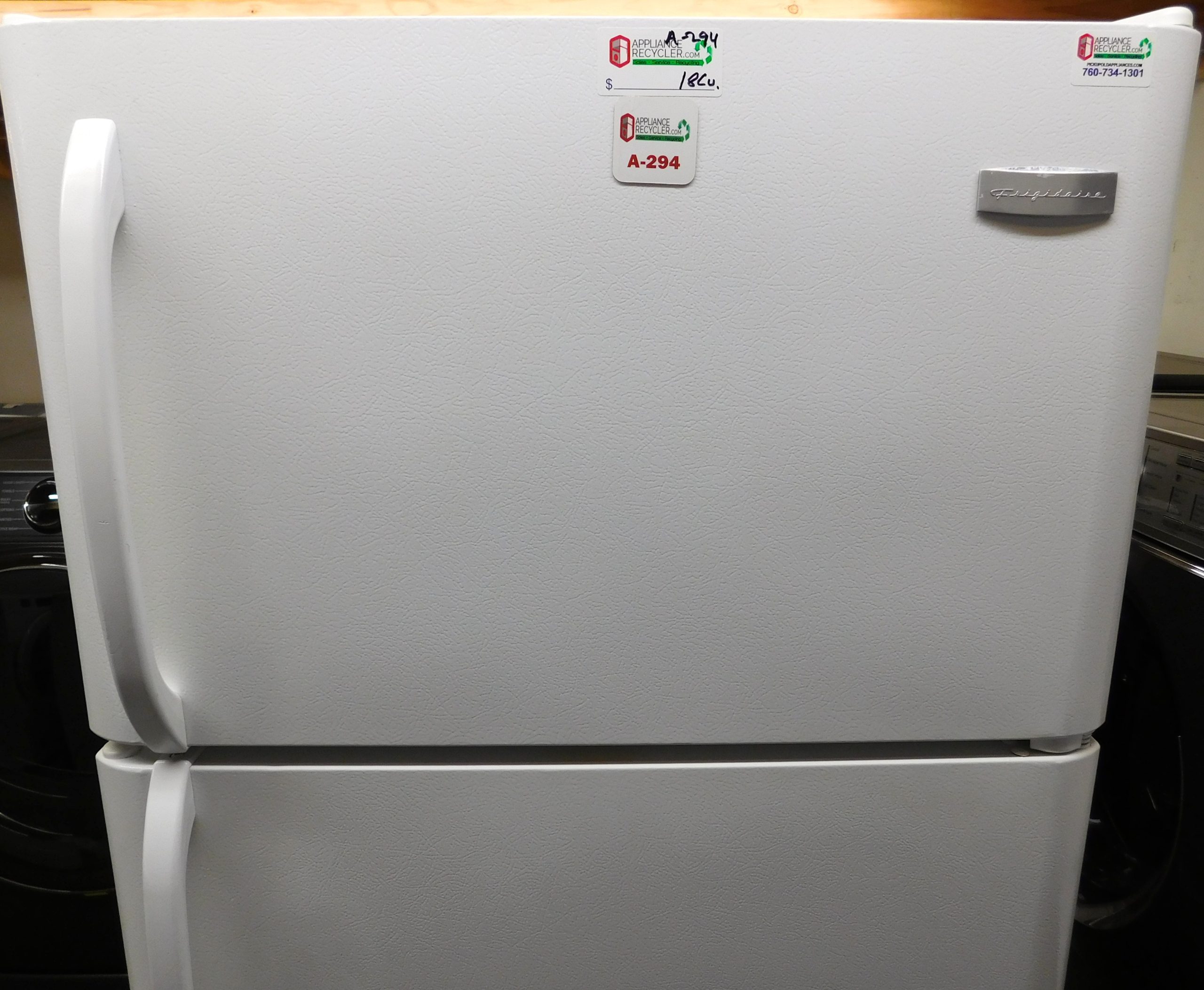 18 Cu. Ft. Frigidaire Refrigerator (Top Freezer) MOD#FRT18G2NW0 ( This Refrigerator is Right Hand Door- Handles on Left)