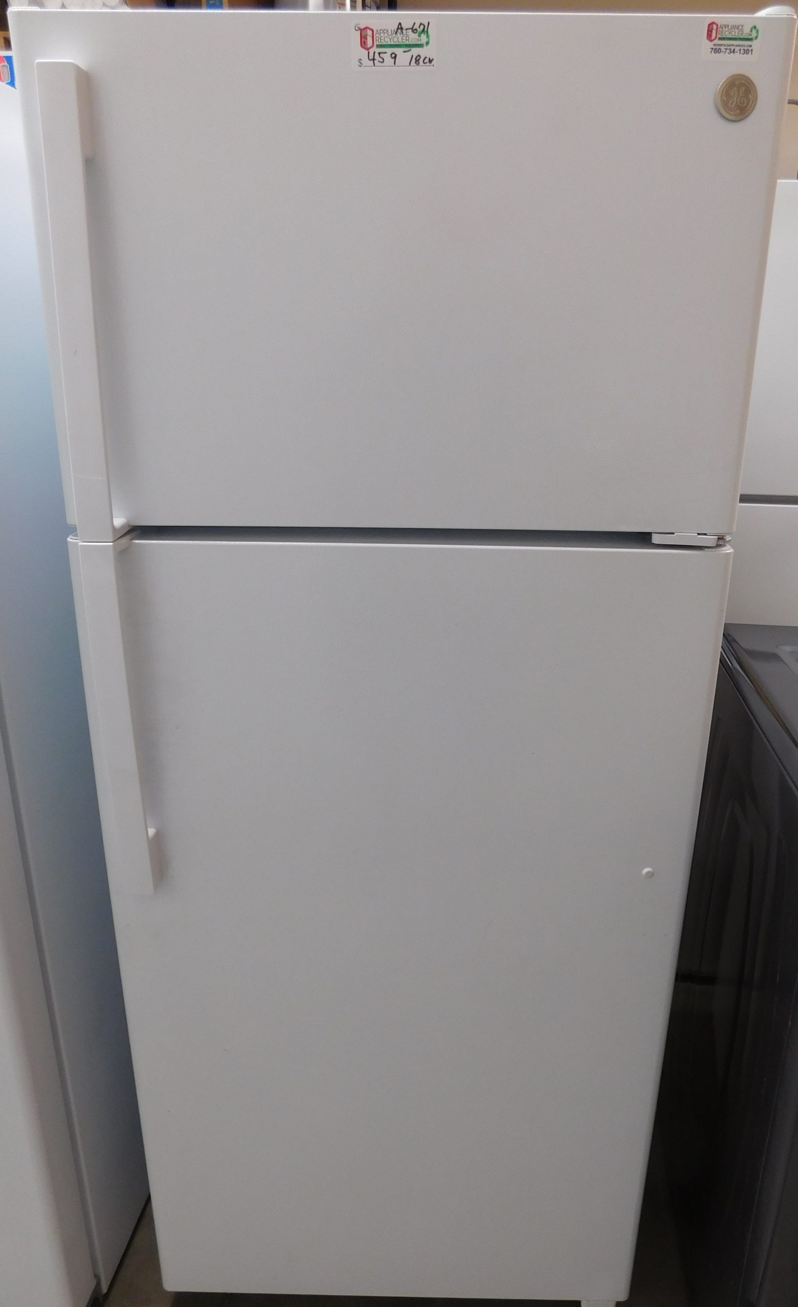 18 Cu. Ft. (Like New) GE Refrigerator (Top Freezer) MOD#GTE18DTNFRWW ( This Refrigerator is Right Hand Door- Handles on Left)