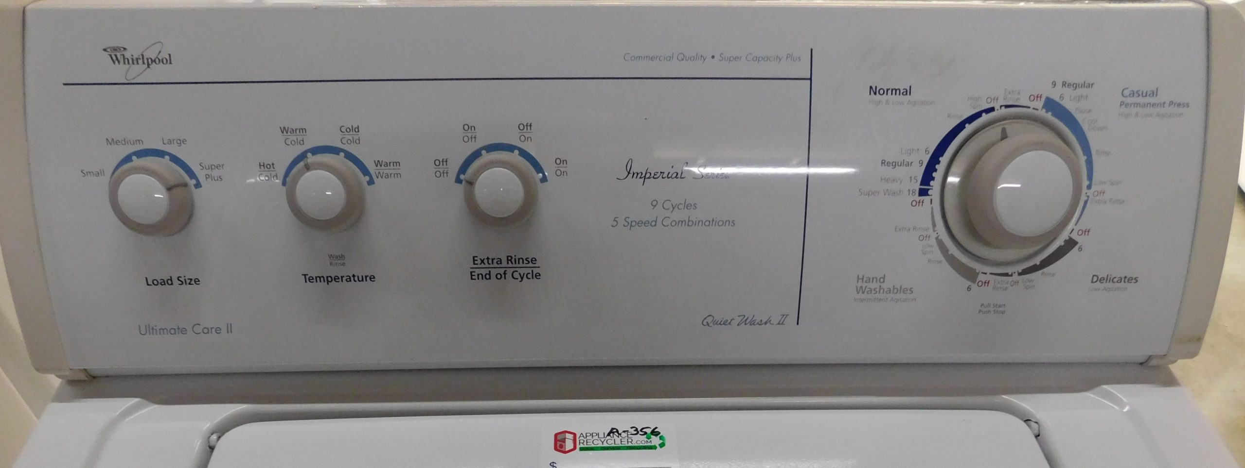 Whirlpool Capacity Washer MOD#LSN1000KQ0 PRODUCT ID#A-356